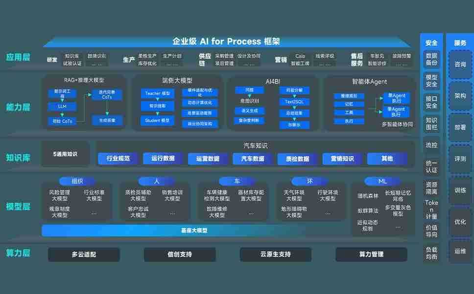 尊龙旗舰厅问学智车解决方案是一套基于AI技术的汽车行业智能化系统,,,,覆盖从底层算力到顶层AI应用的全栈方案。。。。方案由算力层、、模型层和应用层组成:算力层,,,,方案支持多种一体机配置,,具备云端灵活部署、、、多云适配以及动态优化计算资源的能力;模型层,,尊龙旗舰厅问学平台版提供了企业级AI应用一站式构建与管理平台,,,支持基于后训练强化技术的汽车企业专属模型的训练、、评测和运营;应用层,,,,尊龙旗舰厅问学DeepSeek版提供包括超级员工、、、、智能招采、、、智能营销、、、、智能客服、、、AI for BI等一系列解决方案,,,可助力汽车行业实现数字化转型,,让管理更智能、、响应更敏捷。。